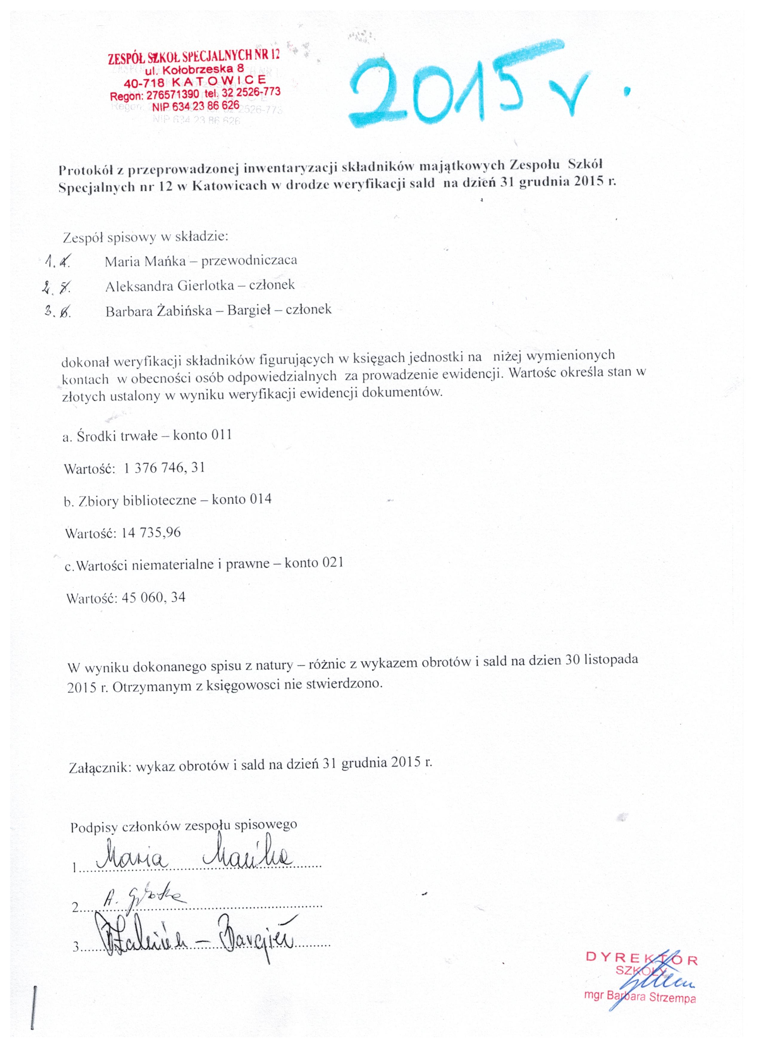 Majątek szkoły 2015